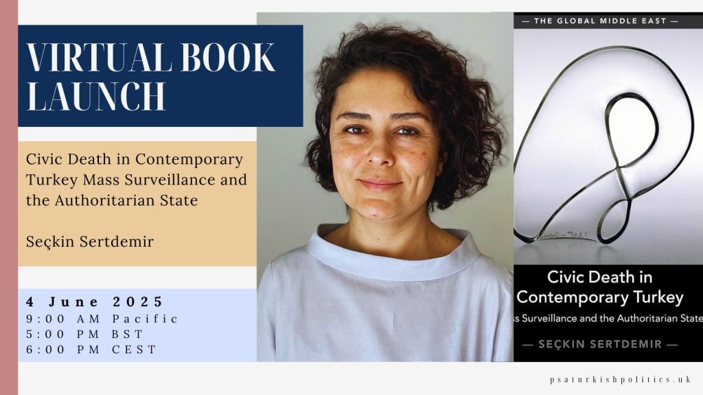 We are pleased to invite you to the launch of Dr. Seçkin Sertdemir Özdemir’s new book, Civic Death in Contemporary Turkey: Mass Surveillance and the Authoritarian State (Cambridge University Press).