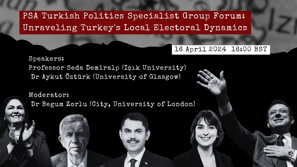 The PSA Turkish Politics Specialist Group cordially invites you to its online forum, where we will analyze the recent local electoral outcomes in Turkey.